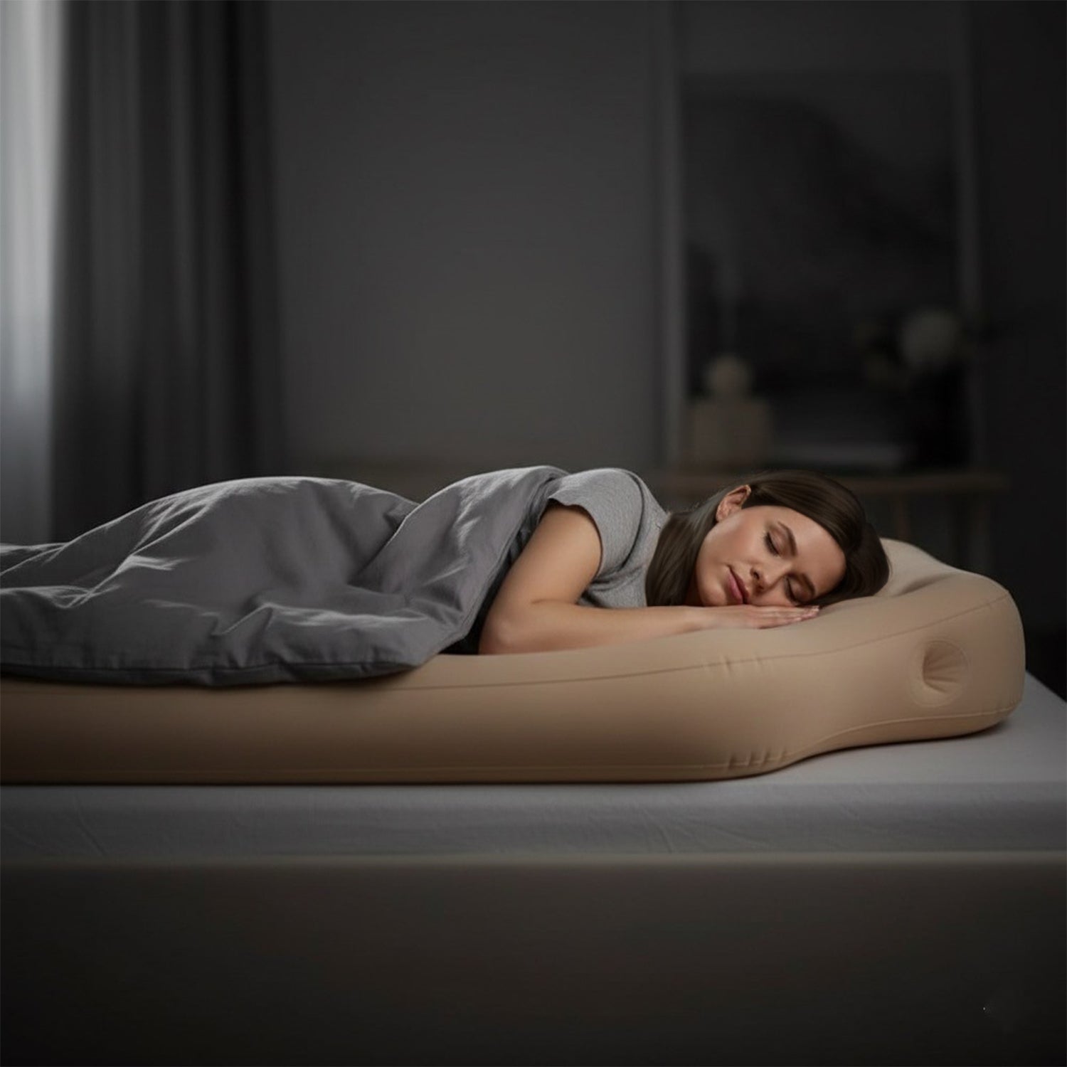 The integrated abdominal support ring softly lifts and stabilizes your bump, improving comfort and circulation. Designed to protect both mom and baby, it ensures natural alignment and a safe, pressure-free rest every time.